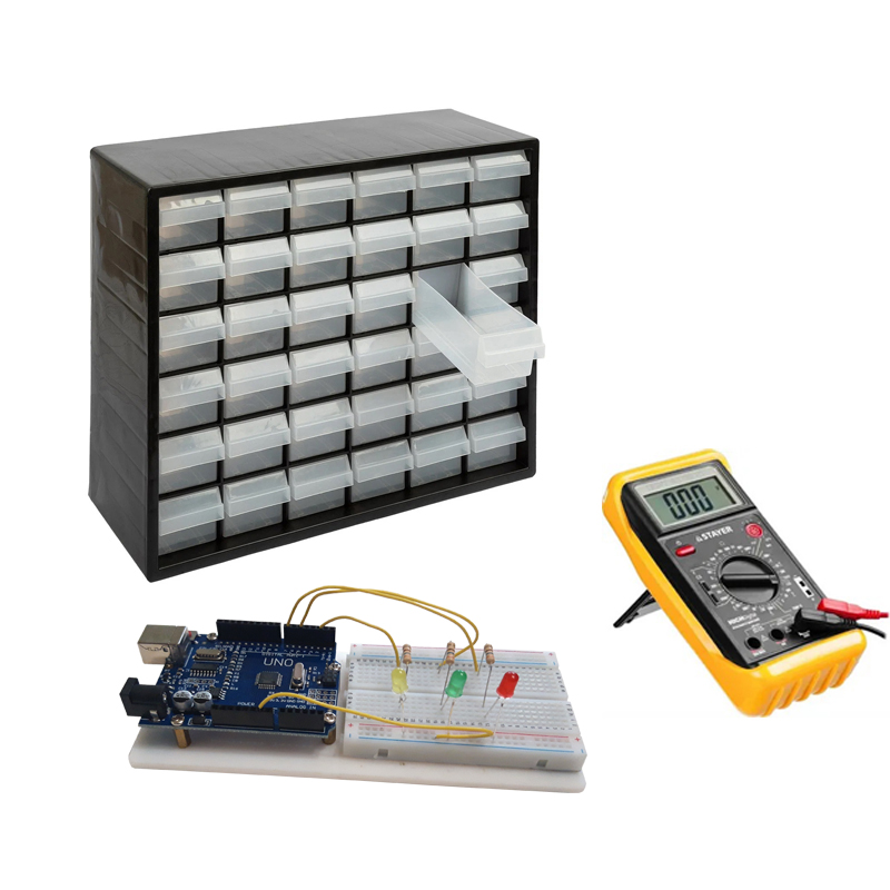 После распаковки набора электронные компоненты следует рассортировать и разложить по ячейкам системы хранения.